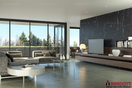 A völgy felé nyíló lakó- és a nappali szobákhoz nagy méretű teraszok tartoznak, valamint a földszinti és I. emeleti lakásokhoz kertkapcsolat is tervezett.