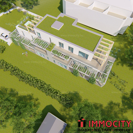 A földszinti 5 szobás lakás 99,75 m2 alapterületű, 49,27 m2-es terasszal, 14,59 m2-es átriummal és egy 58,30 m2-es kizárólagos használatú kertrésszel rendelkezik.