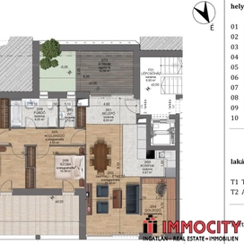 A lakáshoz 2 parkolóhely és egy 9,15 m2-es tárolóhelyiség tartozik.
