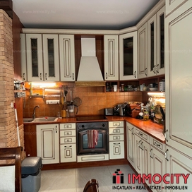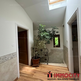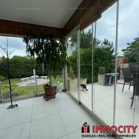 A földszinti tágas amerikai konyhás nappali és ebédlő terét egy további zárt télikert egészíti ki a ház teljes szélességében, amiből akár egy 3. hálószoba alakítható ki téglafalazattal. Ehhez egy 24 m2-es terasz kapcsolódik, és a parkosított, hangulatos kerttől csak néhány lépcső választja el.