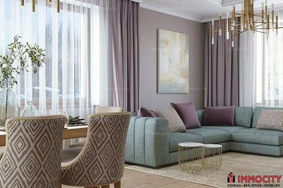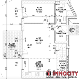 A belső kétszintes, nappali + 4 hálós lakás 120,27 m2 alapterületű, 7 m2-es terasszal és 202 m2-es kizárólagos használatú kertrésszel rendelkezik. A lakáshoz 2 felszíni beálló megvásárolandó 4 M Ft/hely vételáron.