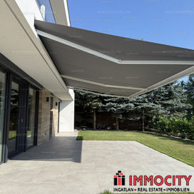 A vételárban a képeken látható beépített bútorok, konyhagépek, valamint a füvesített, robotfűnyíróval és öntözőrendszerrel telepített kert is benne foglaltatik.