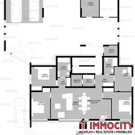 Kültéren 1 db, a teremgarázsban 2 db beállóhely, valamint 1 db 11 m2-es és 1 db 3 m2-es tároló tartozik a lakáshoz, melyeket együttesen 30.000.000 Ft-ért lehet megvásárolni.